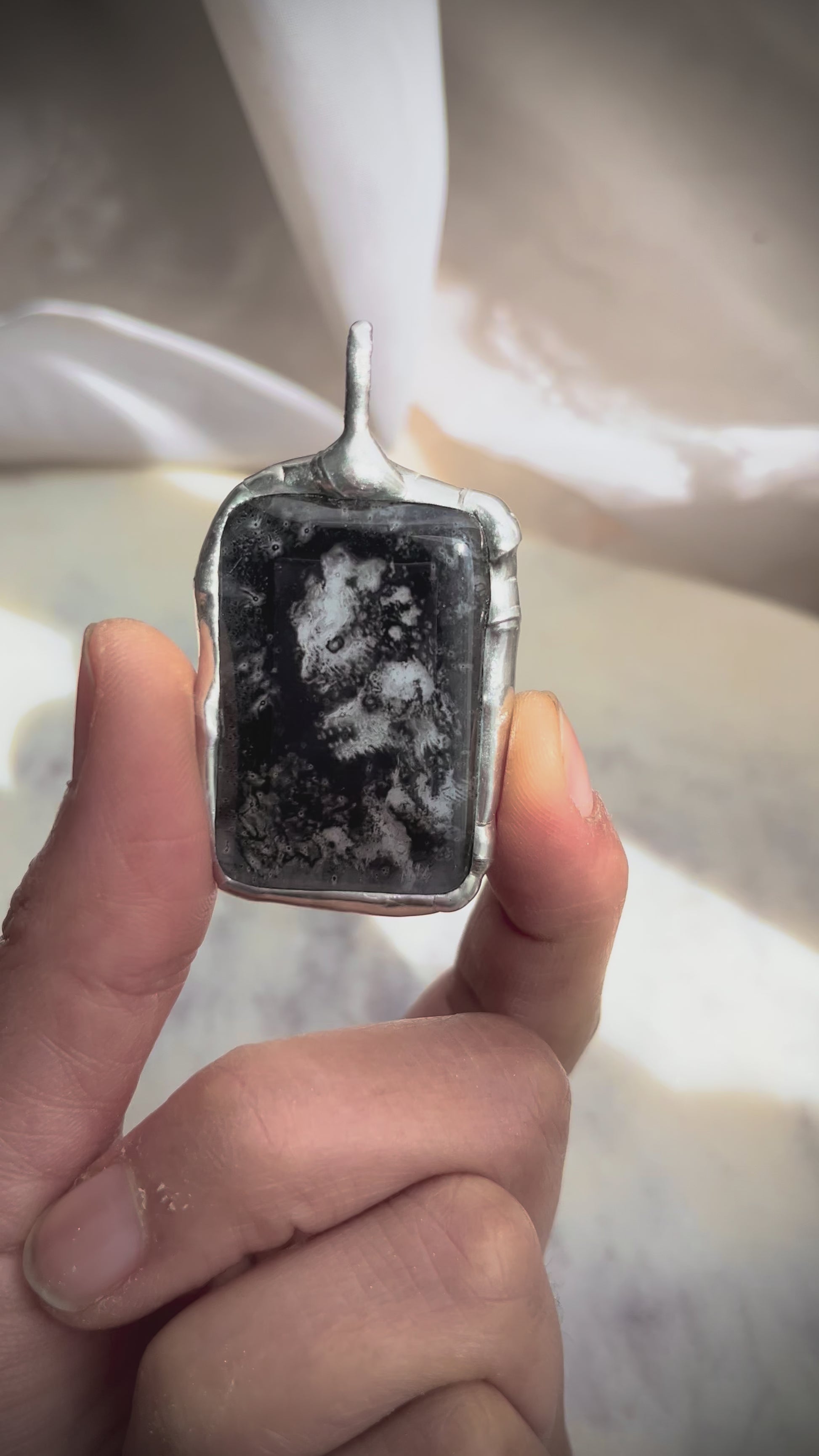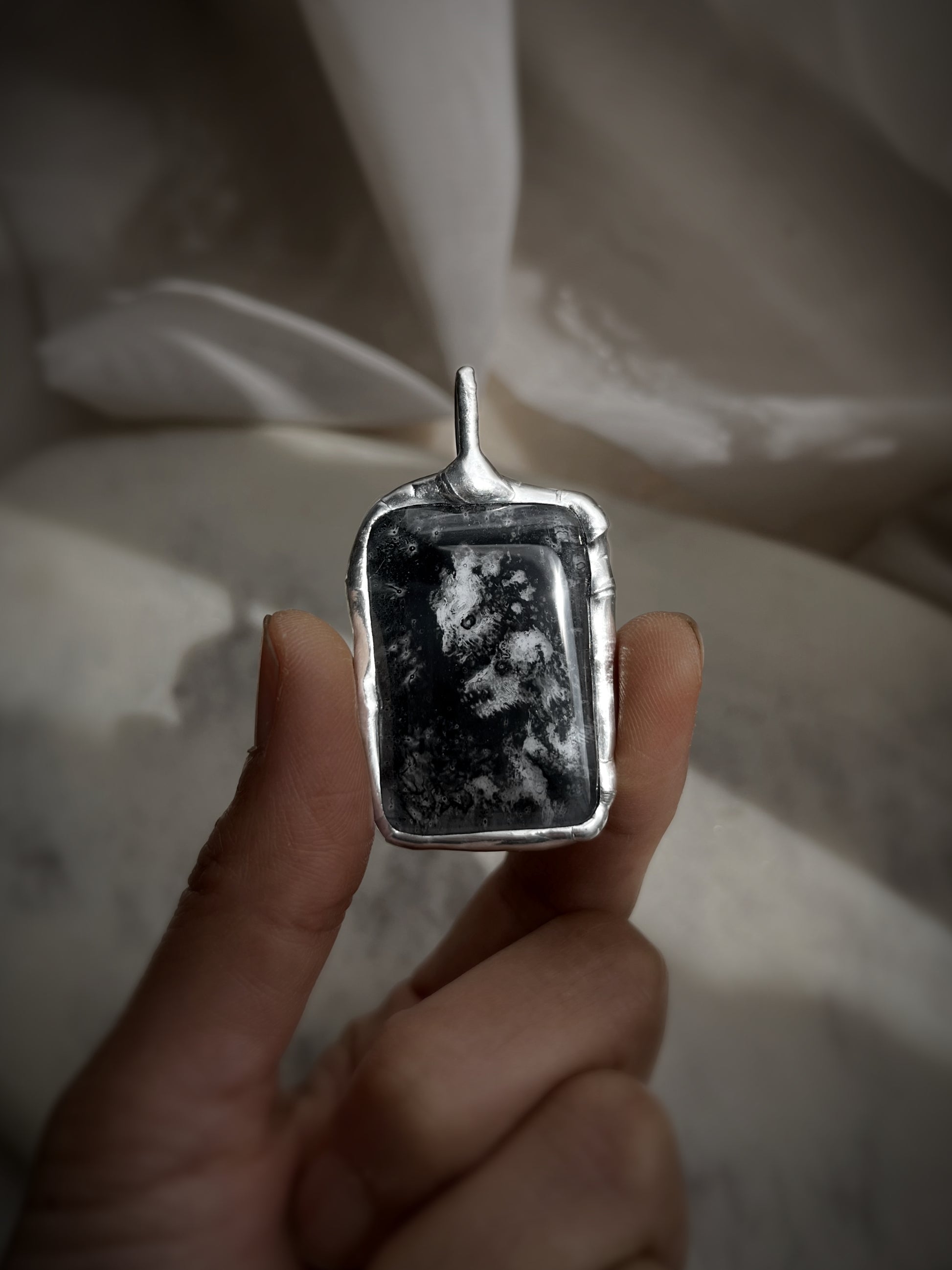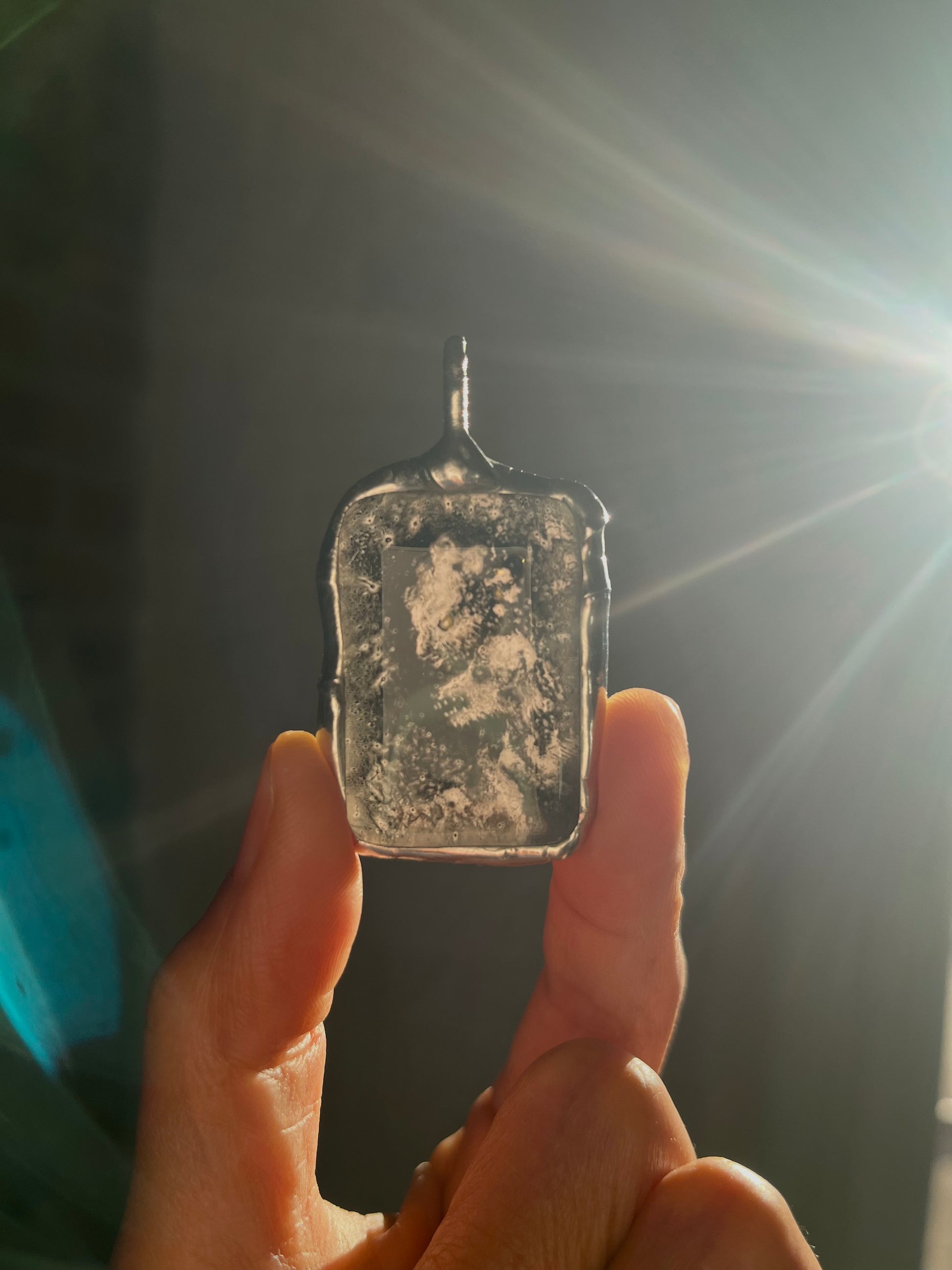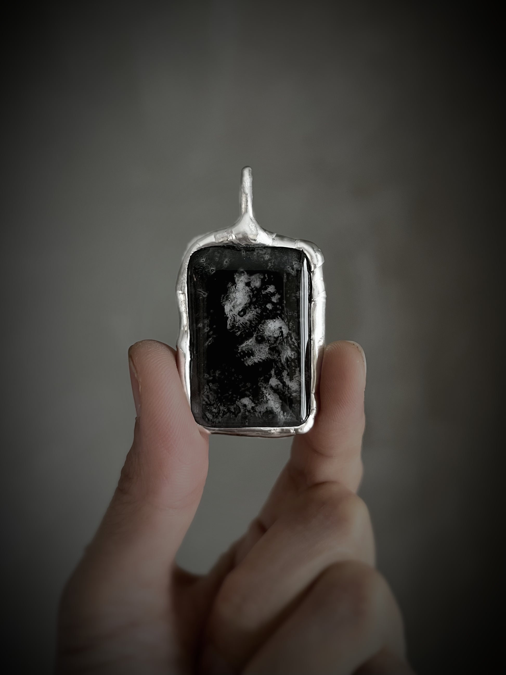 Dreamy and poignant pendant portraying a man and his dog. The blurry depiction makes me wonder if this was the scene when they get reunited over the rainbow bridge, they say that they always are waiting for us there.