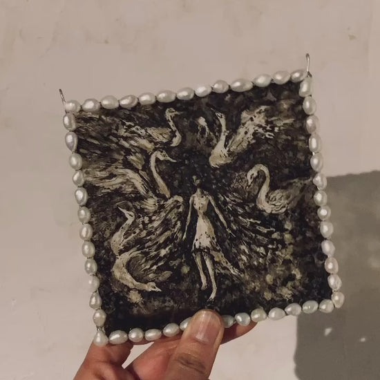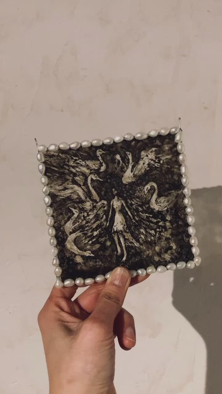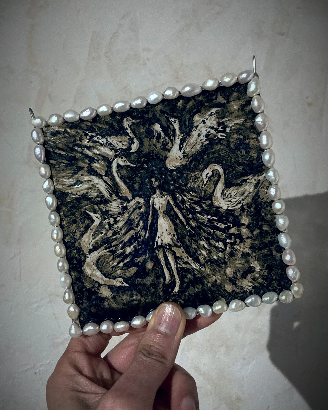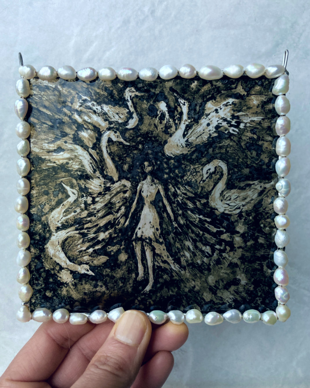 Material: Glass, freshwater pearls, enamel paint, copper tape and lead-free solder