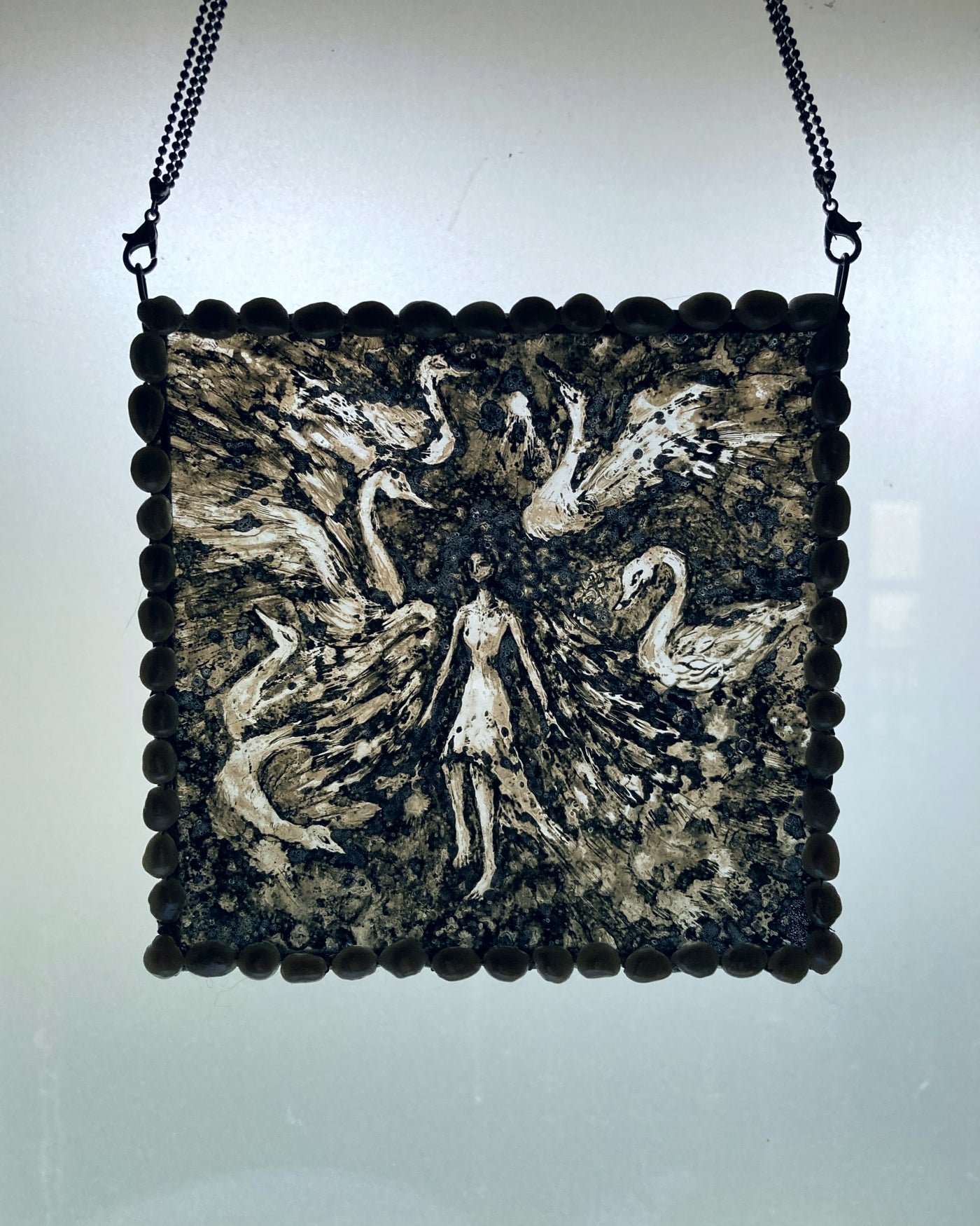 stained glass fused glass swan myth bird glass painting freshwater pearl romantic stained glass gothic stained glass mythical suncatcher